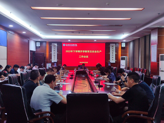 为进一步做好校园疫情防控与学校开学前准备工作,确保新学期各项工作落实落细、有序开展,9月2日下午,学校召开2022年下学期开学教学及安全生产工作会议。校长郑文飞出席并讲话,校党委委员、副校长陈强,校党委委员、副校长欧阳正晟,校党委委员、宣传统战部部长黄义君出席,党政办、教务处、学工部、纪委、各二级学院相关同志参加。会议由陈强主持。会议就新学期教学准备、线上教学、实验实训及安全生产、疫情防控及卫生保洁等方面工作进行了专题研究和部署。