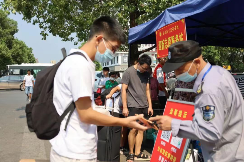 今年,永州职院在永州火车站、零陵火车站、永州汽车北站、永州汽车西站和零陵汽车站设立了五个校外迎新接站处。消毒、扫码、测温……当天,为做好疫情防护,把好校园安全关,入校的新生们自觉进行排队、测温和身份核验,现场秩序井然。学校在大门处设置了新生入学专用通道,同学通过消毒、更换口罩、测量体温、扫码验证(健康码、通信大数据行程码、48小时内核酸检测报告)、身份核验等流程后即可进入校园,随后进行核酸检测,并在志愿者的带领下有序返回宿舍入住。