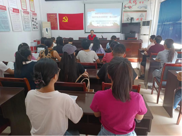 在社区党员教育室,思政部党支部书记邓小善首先为同志们上了一堂生态文明主题党课,他从以为什么建设生态文明、建设什么样的生态文明、怎样建设生态文明为逻辑主线分析了习近平生态文明思想的核心要义、精神实质、丰富内涵、理论贡献和实践要求,并从新冠疫情的产生和防范出发,阐释了生态文明的重要现实指导意义。