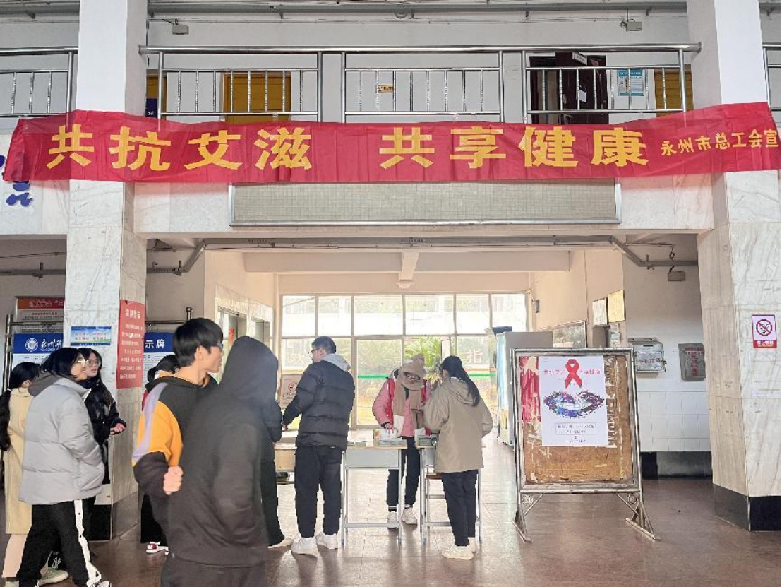 今年12月1日是第35个“世界艾滋病日”,为提高教职工及广大大学生对艾滋病的防治意识,营造全社会关注艾滋病、预防艾滋病和关爱艾滋病人的良好氛围,太阳集团1088vip工会在永州市总工会的领导下,组织志愿者开展了一系列形式多样的艾滋病防治宣教活动。
