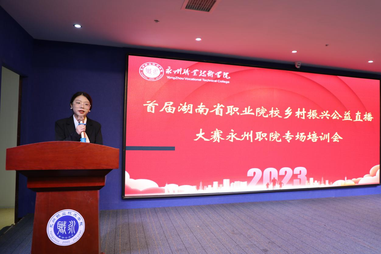 11月14日下午,首届湖南省职业院校乡村振兴公益直播大赛永州职院专场培训会在图书馆五楼大学生创新创业孵化基地路演大厅举办。大赛执委会宣推工作负责人夏冰、组委会供应链负责人刘娟及培训专家等一行7人,学校党委副书记李勇、创新创业学院工作人员及参赛团队负责人与指导老师共70余人参加了培训会。